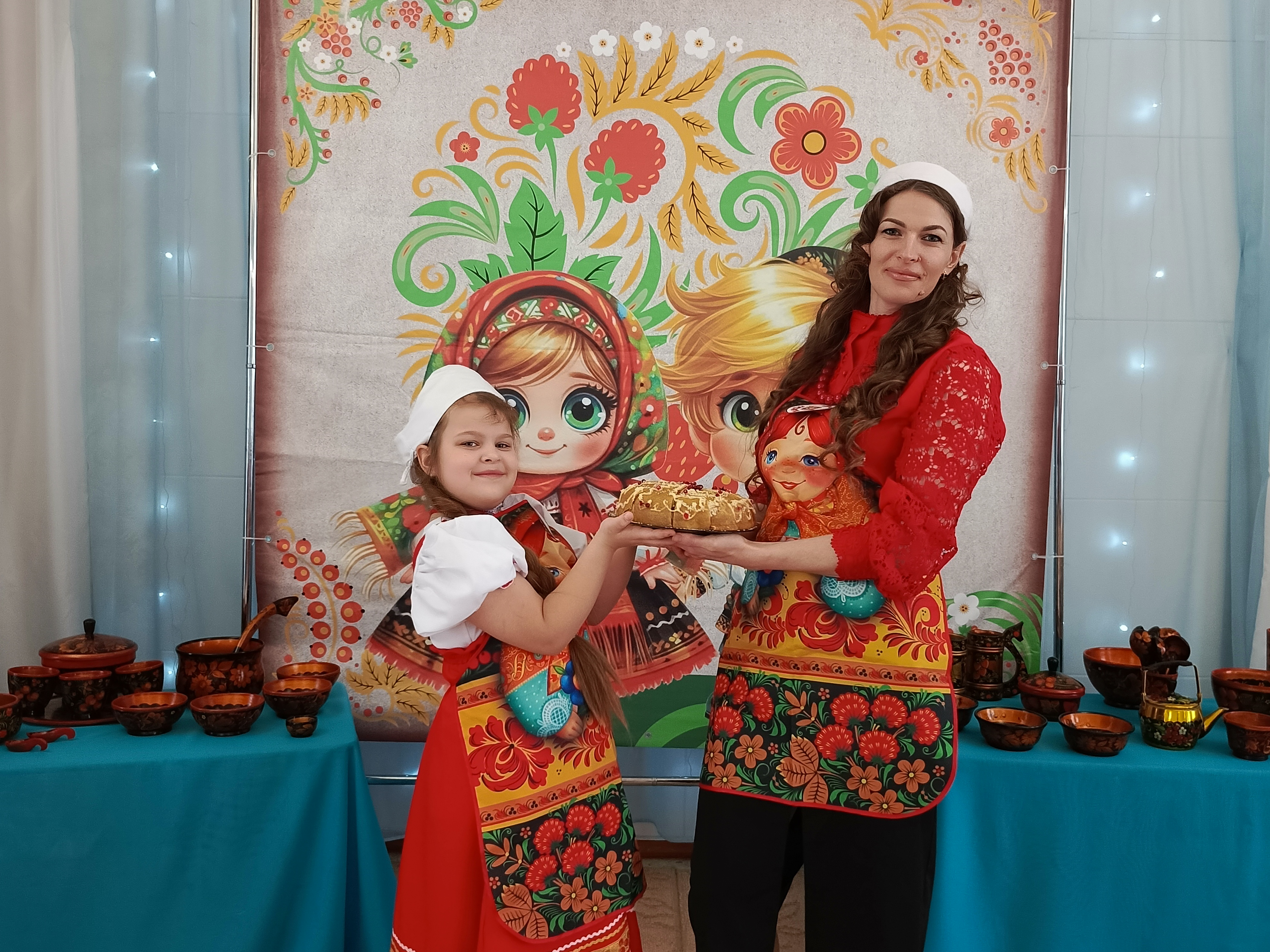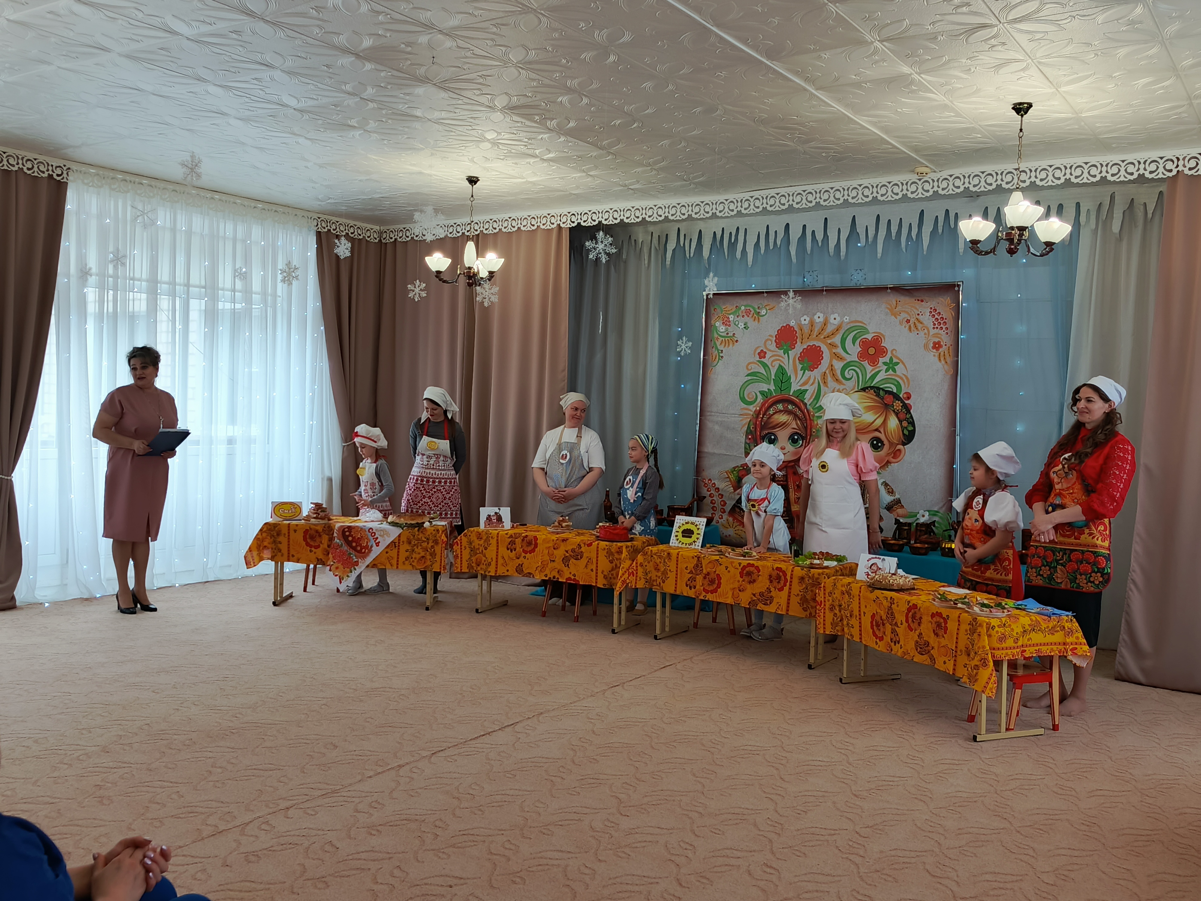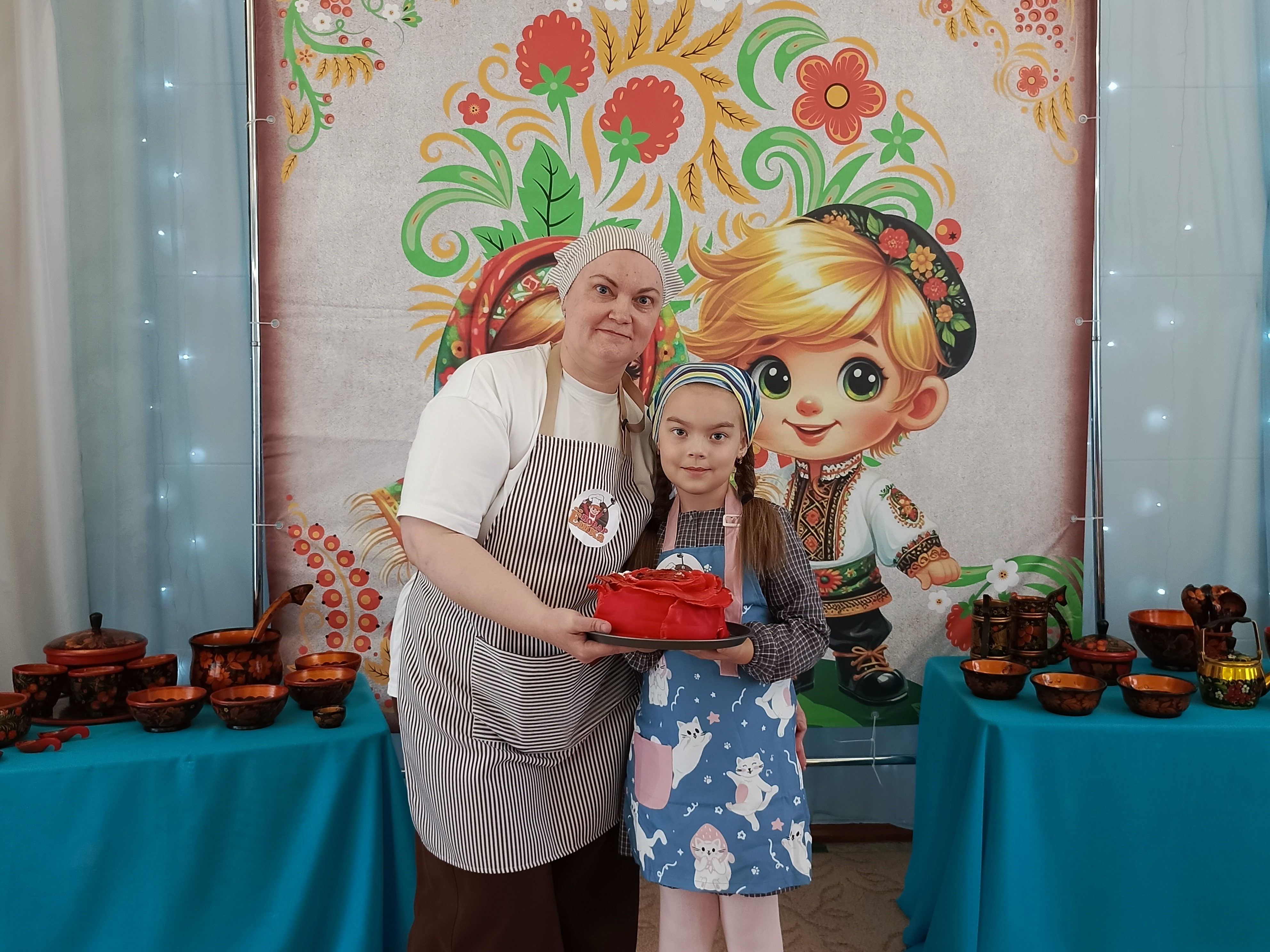 Команда «Поварёшки» удивила публику оригинальностью русских роллов, созданных Евгенией Павловной Андрецовой и её дочерью Софией. Команда «Большая ложка», которую представляли Дубовик Альбина Евгеньевна и ее дочь Мишель продемонстрировали настоящее мастерство выпечки, приготовив изысканный блинный торт "Розу". Завершали праздничное меню участники команды "Смак" Ольги Владимировны Шиловской и ее дочери Софии, которые приготовили вкусный блинный курник.
